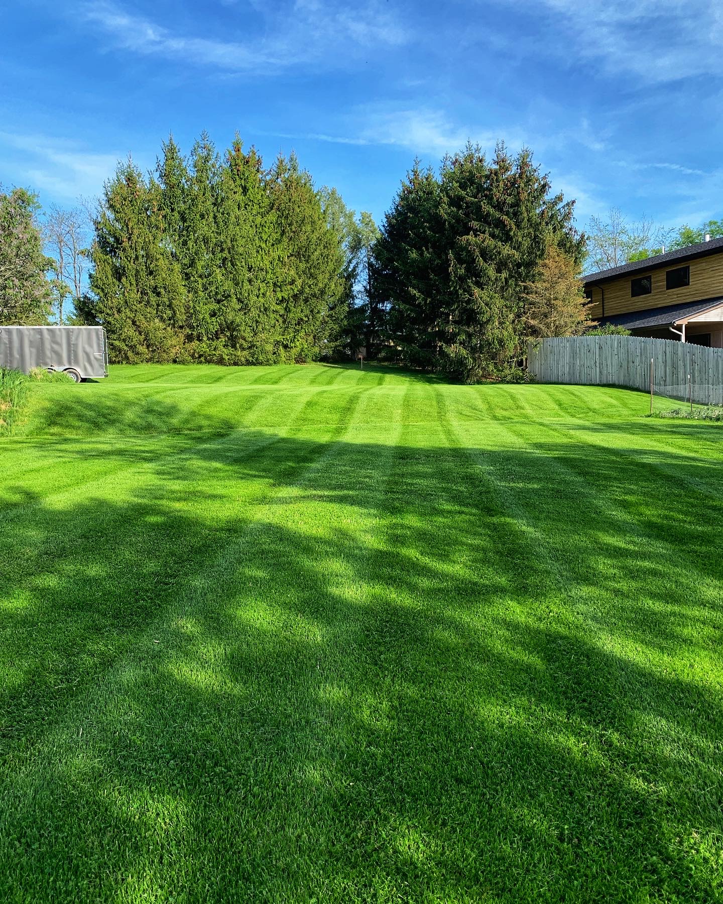 Our weekly cut plan can include a rotational striping pattern, any necessary trimming or push mowing, as well as edging along sidewalks, patios, and driveways, followed up with blowing off all grass clippings